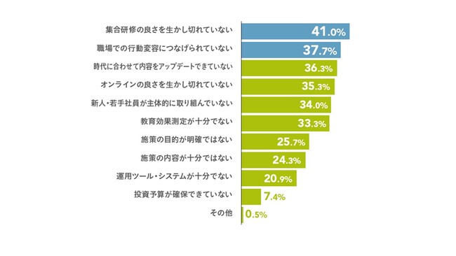 ■Off-JTでは「集合研修の良さを生かしきれていない」「職場での行動変容につなげられていない」が課題の上位に