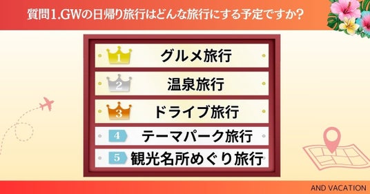 そこで、GWの日帰り旅行の内容をアンケートで聞き取り調査をしました。ぜひ、チェックしてみてください!