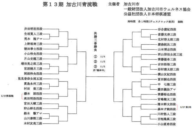 「第13期加古川青流戦」のご取材については、公益社団法人日本将棋連盟の規定がございます。