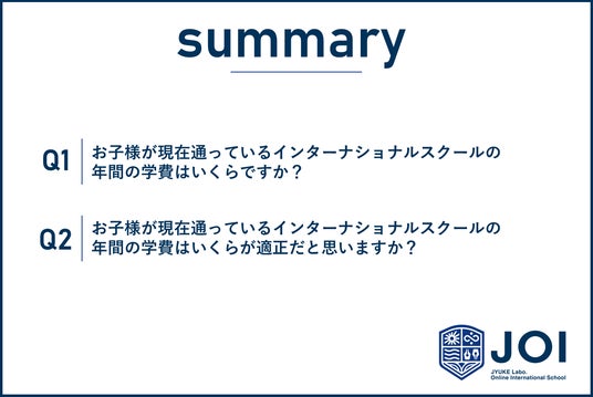 - 調査概要:インターナショナルスクールの学費に関する調査