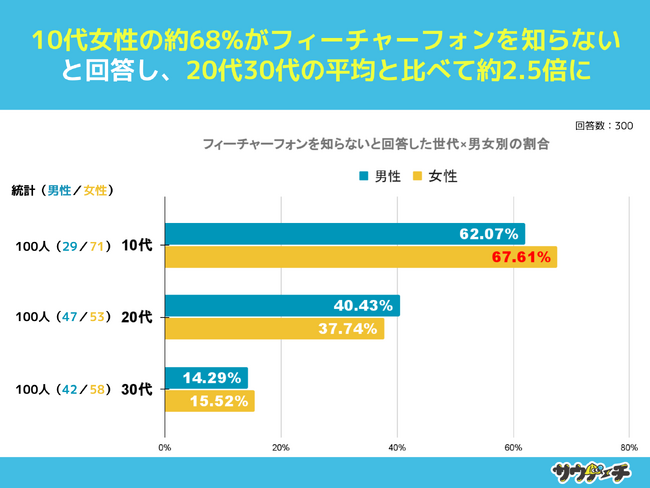 【10代女性の約68%がフィーチャーフォンを知らないと回答し、20代30代の平均と比べて約2.5倍に】