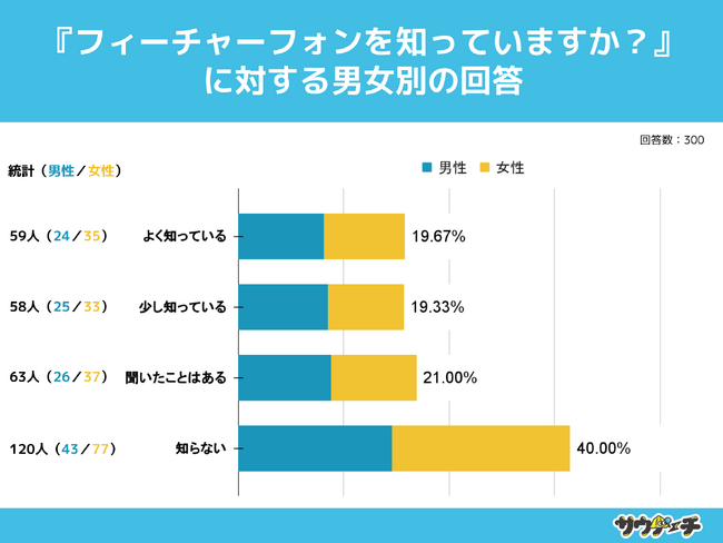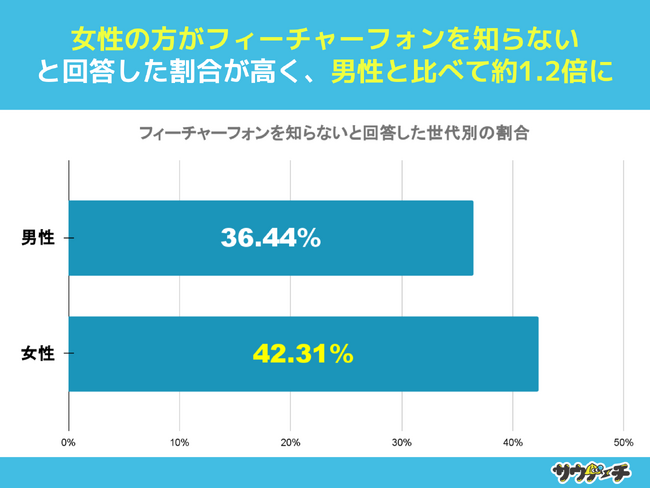 【女性の方がフィーチャーフォンを知らないと回答した割合が高く、男性と比べて約1.2倍に】
