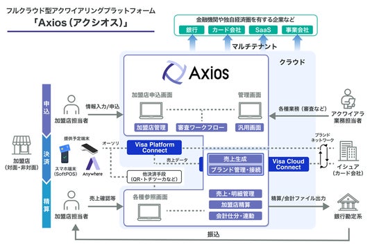 「Axios」は、アクワイアリング事業に必要な機能を、クラウド上のモジュールとして提供するプラットフォームです。