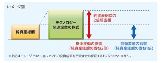 ※信託財産の純資産総額の概ね2倍相当額に対する株価変動の影響および概ね1倍相当額に対する為替変動の影響があります。