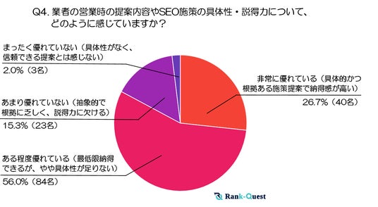 調査結果4.:業者の営業時の提案内容やSEO施策の具体性・説得力について、どのように感じていますか?