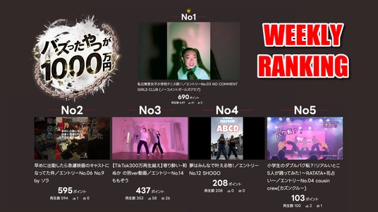関東を中心にレンタルスタジオを60店舗以上運営するSTUDIO BUZZ(バズスタジオ)や、アーティストのプロダクションなどを運営する株式会社BUZZ GROUP(本社:東京都港区、代表取締役:渡辺 憲)より、日本のエンターテインメント産業を盛り上げるべく開催中の超大型企画「バズったやつが1000万円」の第一回目となる週間ランキングをお知らせいたします。