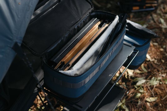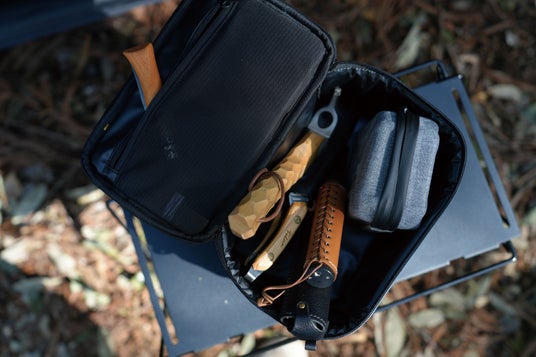 「コードユニット」や「ロタルリバーシブルローテーブル」に簡単に取り付けられるベルクロパーツを搭載し、テーブルサイドに吊るす事で使い勝手を向上させます。サイドに取り付けることで、必要なギアを手元にスムーズに配置する事ができる為、アウトドアシーンでの利便性を最大限に引き出します。