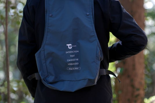 晴天の中、気持ちよく佇むTOKYO CRAFTSのテントの爽やかな青みがかったグレーをイメージし、今回の色をセレクト。ベストでは見慣れない新鮮さがありながらも、落ち着いた風合いが漂うTOKYO CRAFTSらしいカラーリングに。前面には主張しすぎないロゴ入りのベルクロネームと、背面中央部にはブランドコンセプトをプリントし、これまでにない特別感のあるデザインに仕上がっています。