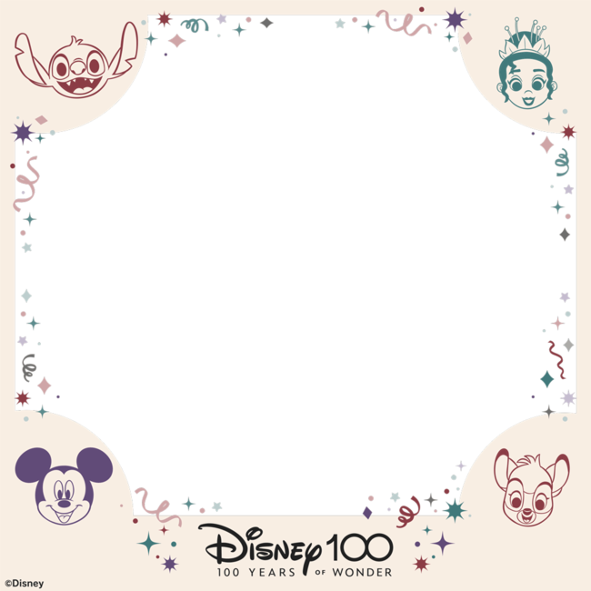 コラボ内容:『ディズニー100』の特別デザインフレームを撮影後に付けることができます。