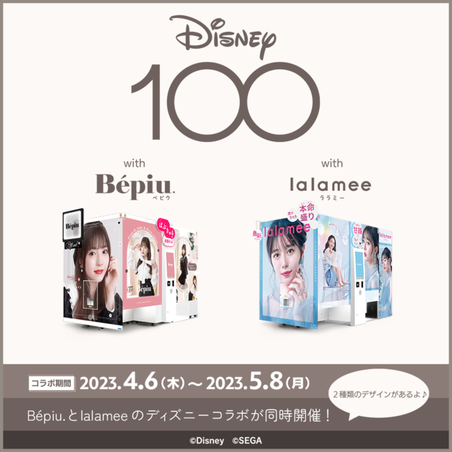 株式会社セガ(本社:東京都品川区、代表取締役社長COO:杉野行雄、以下 セガ)は、好評稼働中のプリクラ機『Bepiu.(ベピウ)』『lalamee(ララミー)』において、ディズニー創立 100周年を祝して、『ディズニー100』とのコラボイベントを2023年4月6日(木)より期間限定で開催いたします。