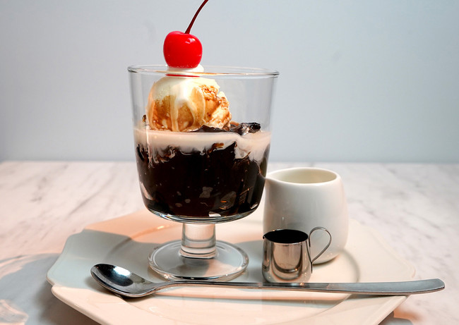 看板メニューの『ミックスジュース』はモチロン、水出しコーヒーを濃く抽出してつくるちょっぴり大人なコーヒーゼリーに特製のコーヒーシロップとフレッシュをかけてお召し上がりいただく、『魅惑のコーヒーゼリー』シロップ漬けにした白桃に、バニラアイス、ゼリー、生クリーム、フランボワーズソースをトッピングした『ピーチメルバ』口の中でとろける焼きプリンと彩り華やかなフルーツ、バニラアイスを添えた『プリンアラモード』などをラインナップ。