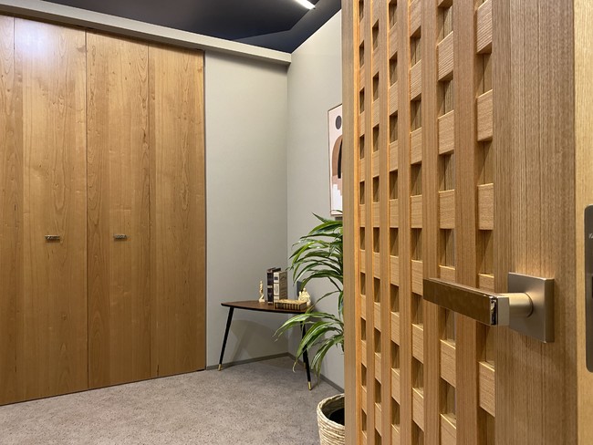 ジャパンディスタイルの特徴は、1.シンプル&ミニマル 2.天然素材 3.ベージュなどの無彩色に近いナチュラルカラーです。当社は2018年にこの特徴を持つ、天然木突板の和モダンな格子ドアを発売し、2019年にドアデザインの先進国イタリア、ミラノの展示会に出展したところ、大人気でした。