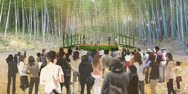 竹まつり開催に向け、ワークショップやミーティングに参加してもらい、自然や人とのふれあい、大工道具のあつかいなど非日常を体験することができ、一緒に創り上げることで、竹が魅力的な資源の一つである事を発見してもらいながら、さらなる地域の発展や人の成長の可能性を感じてもらう。