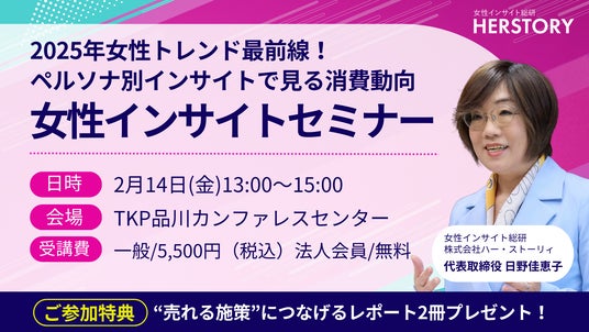女性インサイト総研を有する株式会社ハー・ストーリィ(所在地: 東京都港区, 代表者: 日野佳恵子)は、2025年2月14日(金)に「女性インサイトセミナー2025」を開催いたします。