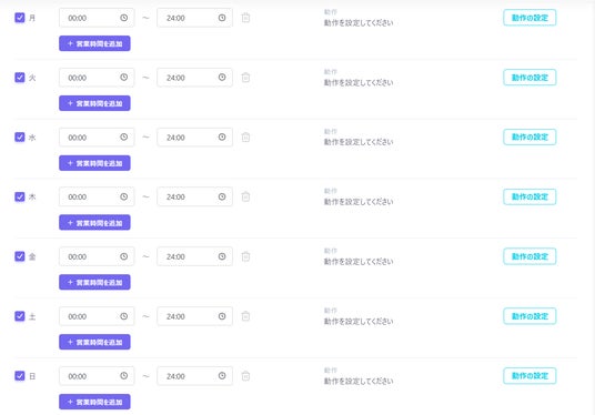 「平日は通常受付」「土日祝日は緊急窓口のみ案内」など、曜日ごとに異なる営業時間やシナリオを設定できるようになりました。