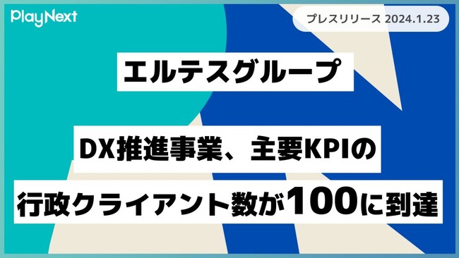 プレイネクストラボ株式会社(本社:東京都品川区、代表取締役:柏 匠、以下「プレイネクストラボ」)が参画する株式会社エルテス(本社:東京都千代田区、代表取締役:菅原貴弘、証券コード:3967、以下「エルテス」)を中心とするエルテスグループは、2023年5月25日開示の「事業計画及び成長可能性に関する説明資料 中期経営計画 2022年~2024年」※1で、DX推進事業の主要KPIに行政クライアント数※2を定めておりました。プレイネクストラボのグループ参画や、株式会社JAPANDX(本社:東京都品川区、代表取締役:菅原貴弘、以下「JAPANDX」)のスーパーアプリの横展開加速によって、2023年12月末時点で100を上回りましたので、ご報告いたします。