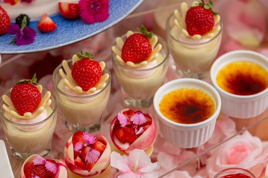 2か月ごとに変わる4種のメインスイーツには、ラベンダーがほのかに香る「ストロベリーラベンダーブリュレ」や、フローラルな香りで、優しい味わいのエルダーフラワーシロップで甘酸っぱいいちごをマリネした「マスカルポーネとエルダーフラワーのマリネ」、たっぷりのあまおうパウダーを練り込んだカップケーキに、ホワイトチョコレートの羽をあしらった「バタフライフェアリーカップケーキ」など、お花や妖精モチーフのスイーツをご用意いたしました。