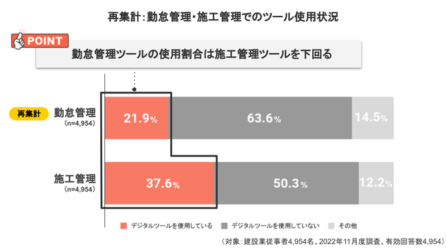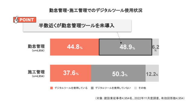 勤怠管理ツール導入割合は施工管理ツールの導入率を下回る