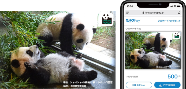 “双子パンダシリーズ”は、昨年6月に上野動物園でシンシンのもとに生まれ、今年1月12日(水)に上野動物園での一般公開が始まる双子のジャイアントパンダのシャオシャオとレイレイの愛らしい成長の過程をQUOカードPayのデザインにしたシリーズです。
