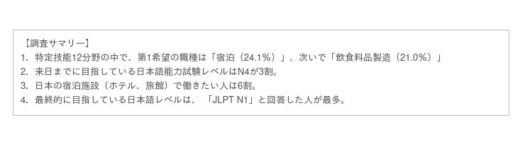 「特定技能ビザ」を取得したい場合、「日本語能力N4レベル以上」というのが条件の一つとなっているため、来日前にJLPT N4を目指す外国人が多いと言えそうです。