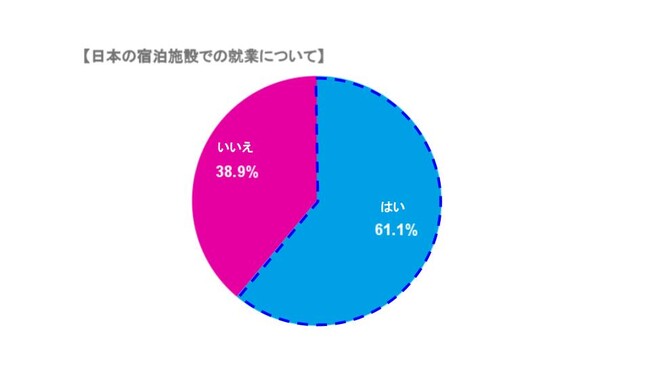 日本の宿泊施設(ホテルや旅館など)で働きたいか、聞いたところ「はい(61.1%)」と回答した人は6割でした。(図3)