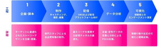 ブランデッドコンテンツの企画・制作にとどまらず、ショートドラマから派生する切り抜き動画などのフォーマットにも対応していきます。さらに、プロダクトプレイスメントをはじめとする広告プロモーション手法の確立や企業アカウントのIP化によるブランド戦略の展開も視野に入れています。テクノロジーの活用を軸に、事業展開を本格化およびパートナー企業との協業拡大を図り、顧客のマーケティング活動を伴走していきます。