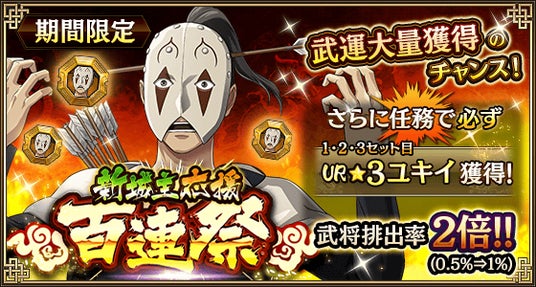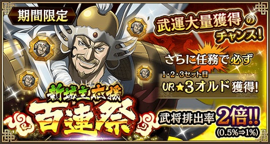 また、SR★4武将排出確率が通常時と比べて6倍にUPします!