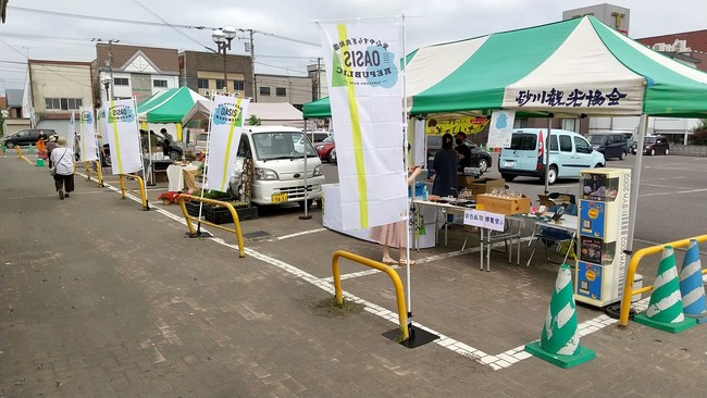枠内では、地元への周知を図るためのマルシェ形式による販売会、枠外では当事業から生み出された参画事業者連携による新商品を柱としたEC(購入型のクラウドファンド)を展開。
