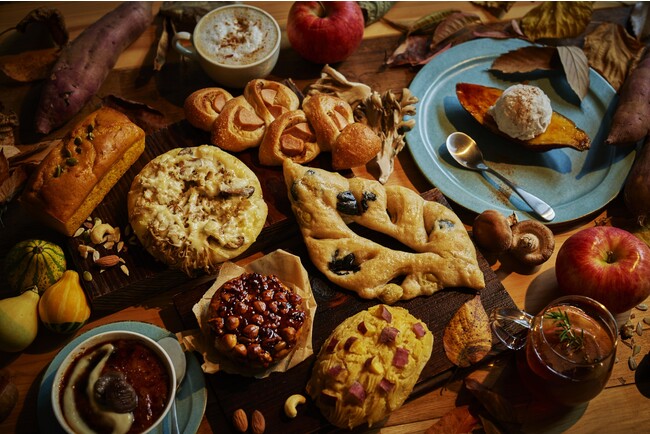 6種類のベーカリーメニューと2種のスイーツメニュー、また2種のドリンクメニューが登場します。旬のさつまいもや栗、かぼちゃをふんだんに使用した濃厚な味わいの商品やナッツやキャラメルを使用した、甘くほろ苦い大人風味の商品をご用意しました。