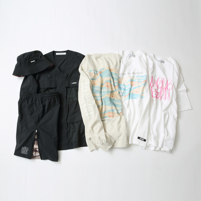 また、フロントにペンライトアートをモチーフにした両ブランドのロゴをプリントしたデザインの半袖Tシャツは、バックに特別に作られた両ブランドのネームラベルが、コラボレーションをさりげなく主張しています。