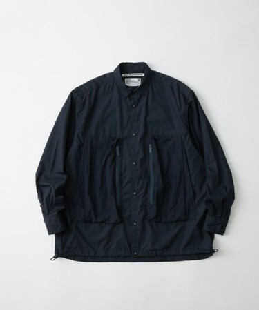 背中のアンブレラヨークや裾のドローコードがアクセントになり、シャツとしての着用はもちろん、羽織としても重宝します。
