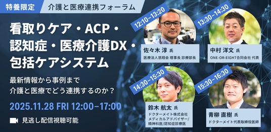 介護事業所向けに医療ソリューションを提供するドクターメイト株式会社(本社:東京都中央区、代表取締役・医師 青柳 直樹)は、介護と医療連携フォーラム「看取りケア・ACP・認知症・医療介護DX・包括ケアシステム」を、2025年11月28日(金)12時より開催することをお知らせいたします。