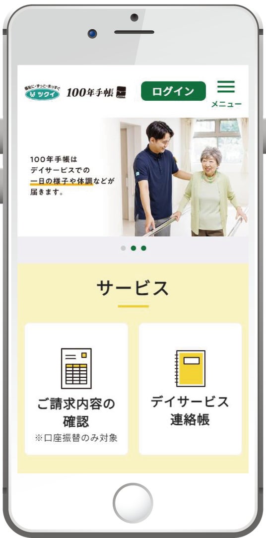 株式会社ツクイ(本社︓神奈川県横浜市、代表取締役社長 高畠 毅、以下「当社」)はこのたび、当社の介護サービスをご利用いただいている方のご家族・ご親族などを対象とした会員制ウェブサイト「100年手帳」をリリースしました。デイサービスの連絡帳、介護サービス利用料の請求書、当社からの各種お知らせなどをデジタル化することにより、介護をする方(ケアラー)の利便性の向上、従業員の業務負担の軽減、介護と医療のスムーズな連携などを目指すとともに、ペーパーレス化による地球環境への配慮にも取り組みます。