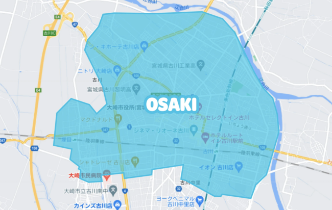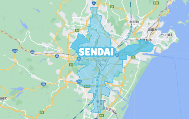 仙台エリア:宮城県仙台市青葉区中山、多賀城市の一部地域。エリアは順次拡大予定。