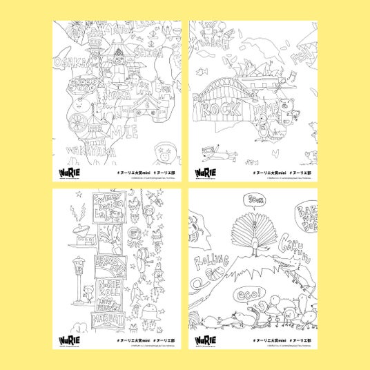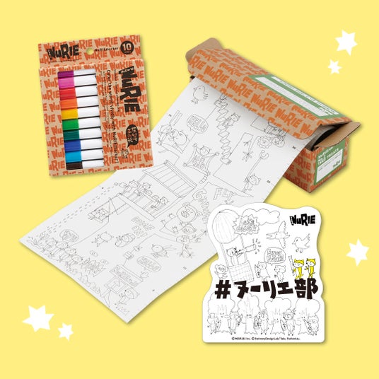 「NuRIE」はA0サイズの大きなものや2メートル以上の長いものなど、他にはない大きさが特徴のぬりえのシリーズです。絵柄は株式会社スイミーデザインラボのアートディレクター吉水卓氏が描いたもので、ユニークなタッチと絵柄に散りばめられた物語が、家族や友達とのコミュニケーションを生み出します。