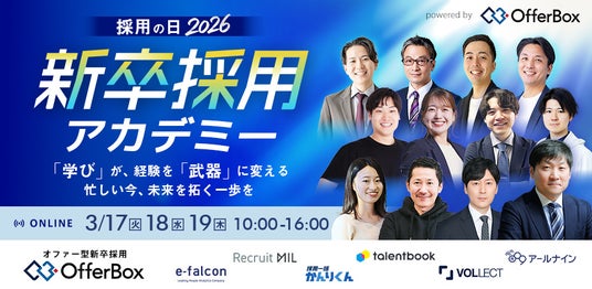 ロールモデル就活・転職サイト「talentbook」及び、法人向け採用CXソリューションを提供するtalentbook株式会社(本社:東京都渋谷区、共同代表取締役:大堀航/大堀海、以下「当社」)は、株式会社i-plugが開催するオンラインイベント「【採用の日2026】新卒採用アカデミー 「学び」が、経験を「武器」に変える忙しい今、未来を拓く一歩を」に登壇することをお知らせします。