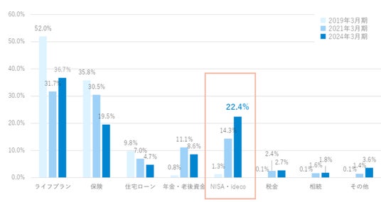 足元では物価高の影響等により生活者の家計防衛等に対する意識が浸透しつつあります。他方で、今年1月からスタートした新NISA制度に注目が集まっていることもあり、NISA・iDeCo関連の相談が増加しています。