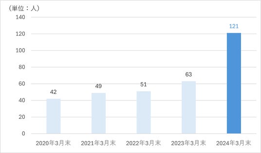 また、当社におけるIFA登録者数も2024年3月末時点で121名(※2.3)と前年度から約2倍に増加し、資産形成・運用に関するニーズに対応するための体制を拡大しています。
