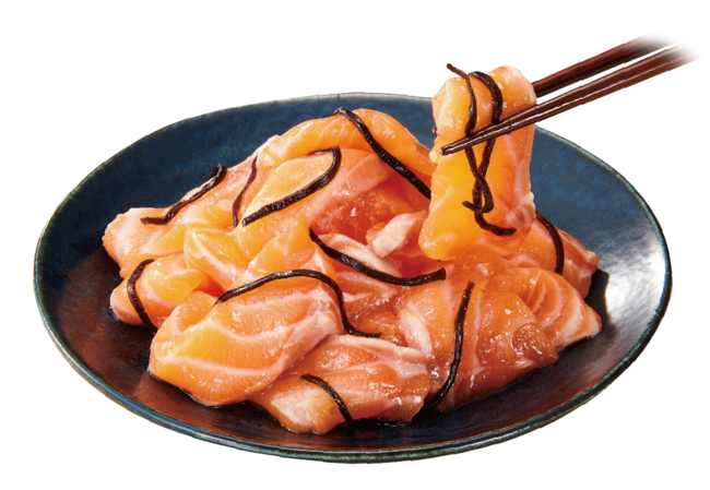 くらこん塩こんぶは、お客様からも支持の高い人気商品です。本醸造醤油を使いじっくりと手作業で炊き込み、絶妙な硬さに仕上がっています。辛すぎず、甘すぎず様々な料理に合うようくらこん独自の配合で調味されています。使いやすい幅で細切りカットされていてどんな料理ともなじみます。塩こんぶを使ったメニュー提案も積極的に行っているくらこん。メニュー提案のCMを見た当社担当者のご家族から、塩こんぶをサーモンと和えるとおいしいと情報をいただき、今回のコラボに至りました。おいしく手軽に楽しめ親和性の高いコラボが実現しました。