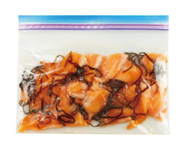2.チャック付き袋に全ての材料を入れ、全体がなじむようにしっかりともんで冷蔵庫で約20分漬ければ完成
