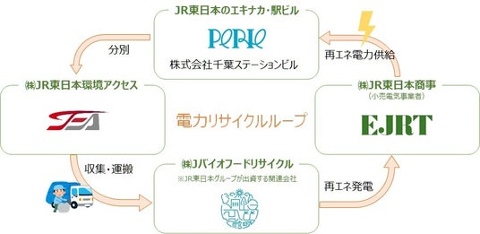〇 4月1日より、千葉ステーションビルの商業施設から排出された食品廃棄物について、分別・収集・運搬・バイオガス化・再生可能エネルギーの活用に至る役割をJR東日本グループが連携して担うことにより、JR東日本グループが構築する「電力リサイクルループ」の方式で資源循環に寄与します。