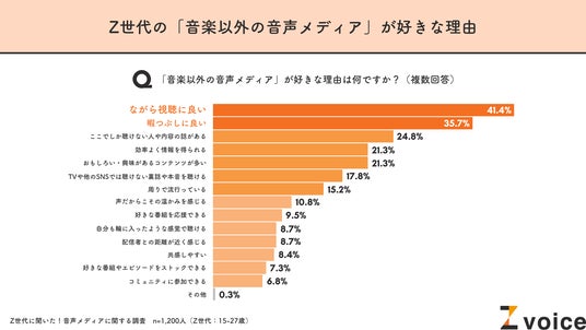 Z世代の41.4%が音声メディアを好む理由は「ながら視聴に良い」から