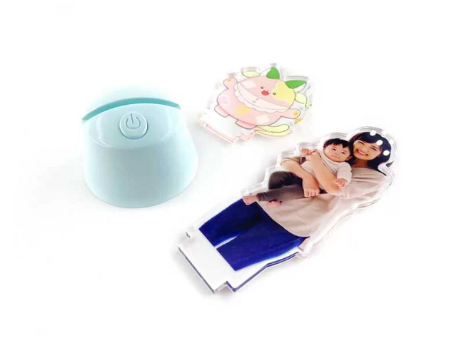 LEDアクリルスタンドminiは、アクリルフィギュア(通称アクスタ)をライトアップするための台座です。特別な技術が必要なく、簡単に自作したアクスタを光り輝くアクリルグッズに変身させることができます。アクスタの形やデザインは自由にカスタマイズ可能で、個性豊かなオリジナルのLEDアクリルスタンドが手軽に作成できます。