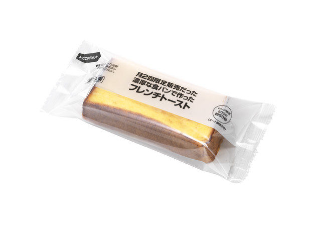 「バターなんていらないかも、と思わず声に出したくなるほど濃厚な食パン」の味わいを活かすため、通常より多めの牛乳を配合し、加糖卵黄を入れてコクを出したフレンチ液に漬けてトーストしました。冷凍でもご購入いただけるため、温めて手軽にフレンチトーストをお楽しみいただけます。電子レンジで加熱していただき、フライパンで表面がカリッとする程度に軽くトーストしていただくのがおすすめです。またお好みで、別売りの「メープル風シロップ」(40円)をフレンチトーストにかけてお召し上がりいただけます。
