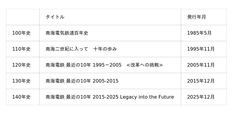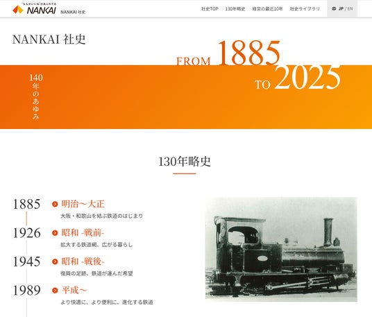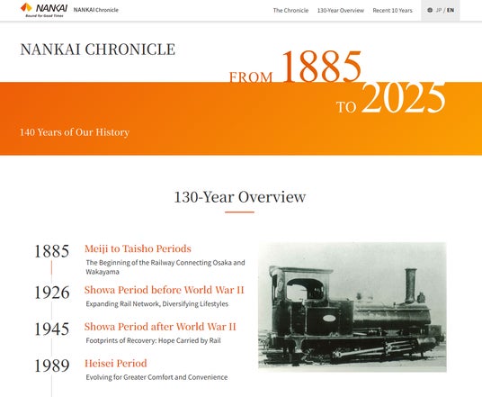 株式会社NANKAI(社長:岡嶋 信行)は、南海電鉄140年史『南海電鉄 最近の10年 2015―2025 Legacy into the Future」を、2026年4月にリニューアルした当社公式サイト内の特設サイトで公開しています。