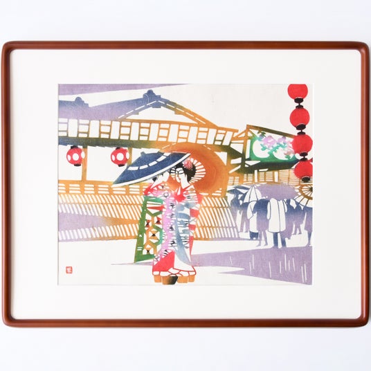 木版画「春雨(祇園付近)」