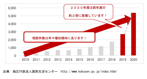 =「保険金が使える」と勧誘する住宅修理サービスの年度別相談件数=