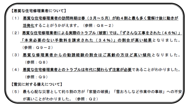 「雪災への対策・悪質な住宅修理業者に関する意識調査」と