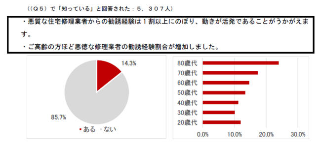 Q5.自然災害後や雪解け時期に、悪質な住宅修理業者が過大な保険金請求を目的として被害の有無に関わらず、訪問してくることや連絡がくることをご存知ですか。