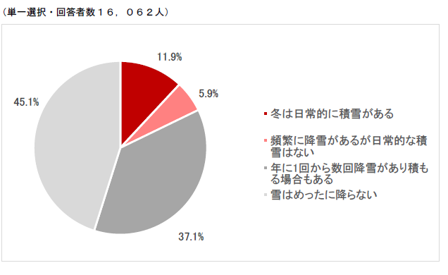 Q1.あなたのお住まいの地域は、どれくらいの頻度で雪が積もりますか。ご自身の感覚に近いものを1つお選びください。